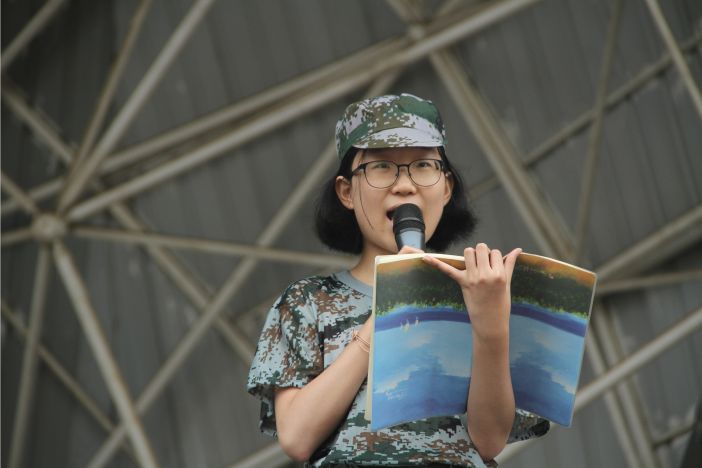 而后,参训学生代表2204班的任研佳同学发言。她在讲话中代表参训学生向教官、老师们表示感谢,表明了圆满完成军训任务的决心,并保证接下来的军训中将做到:一、尊重教官,服从命令;二、磨练意志,锻炼作风;三、团结互助,友爱协作;四、遵守纪律,做好内务。