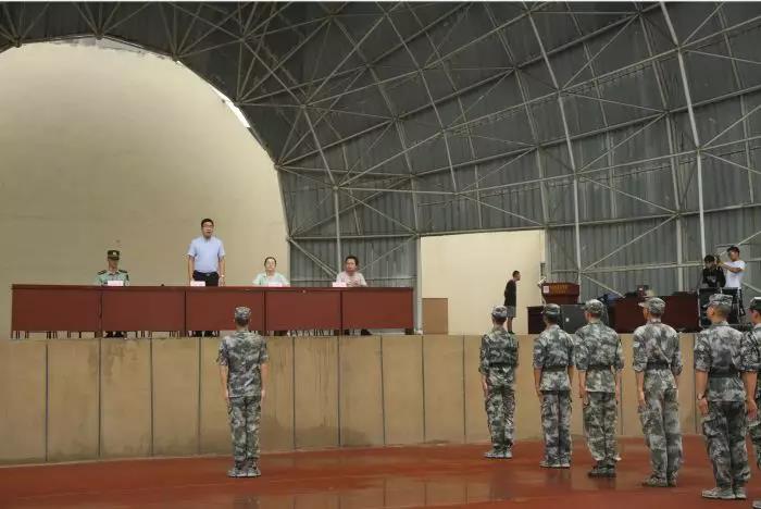 观摩过教官们精彩的军训科目示范表演后,动员大会圆满结束。