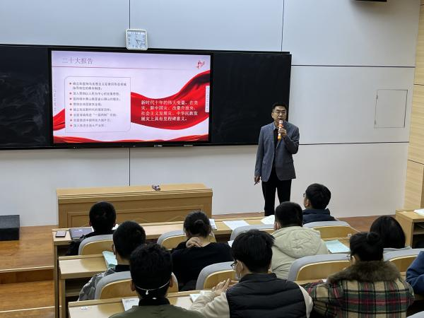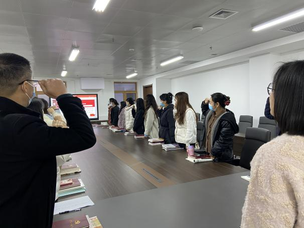 王森副校长为第二支部讲授党课《学习二十大精神内容核心要点》,并为重温入党誓词活动领誓。会后,第二支部组织支部党员通过线上方式,并利用学习强国平台加强学习。