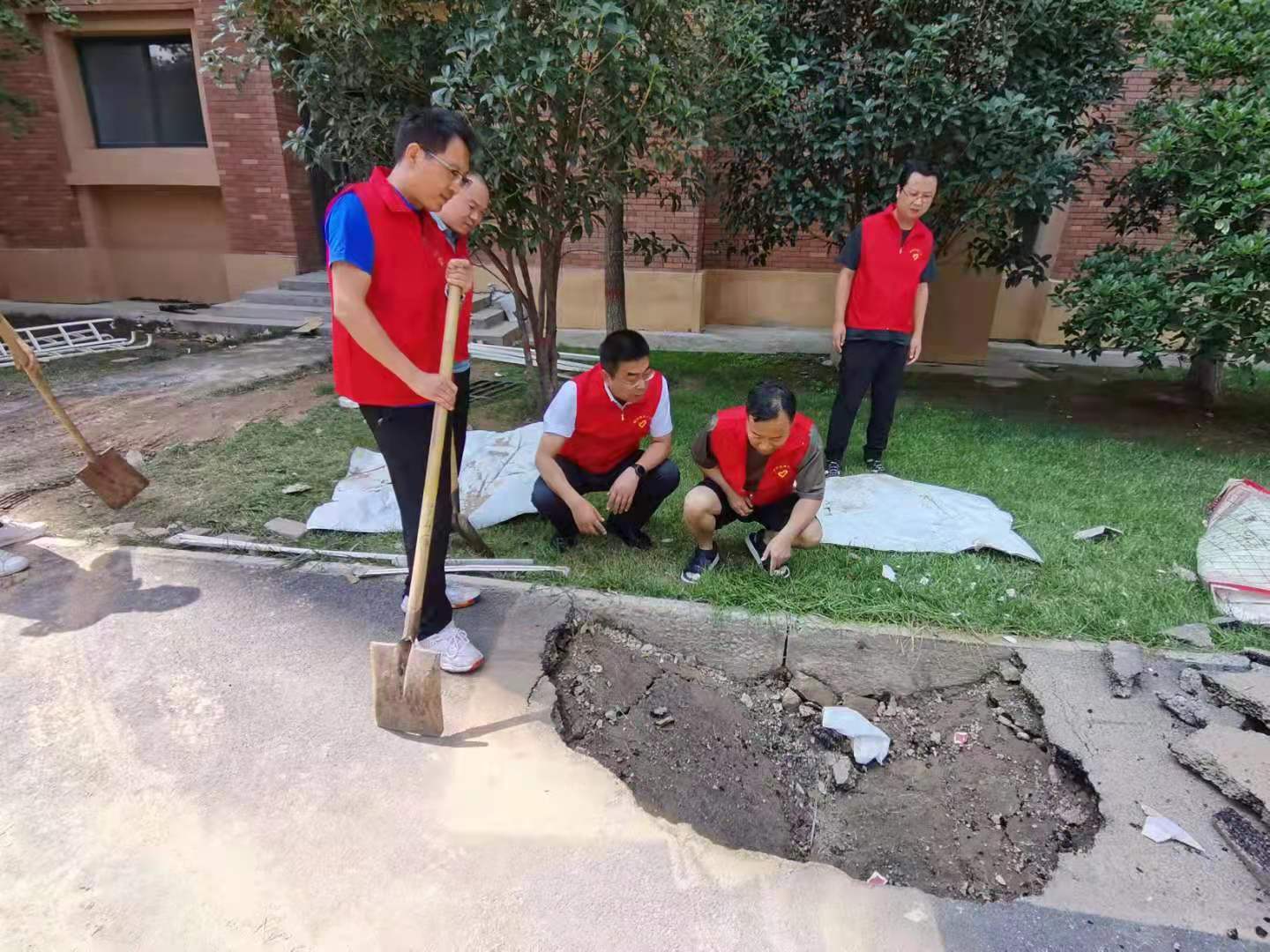 7月底至8月初期间,郑州龙湖一中牛建勋副书记带队,组织学校党员志愿者开展灾后志愿活动,检查学校校园及周边硬件,灾后校园清理,恢复校园环境,并前往周边社区开展涝后宣传教育与志愿活动。