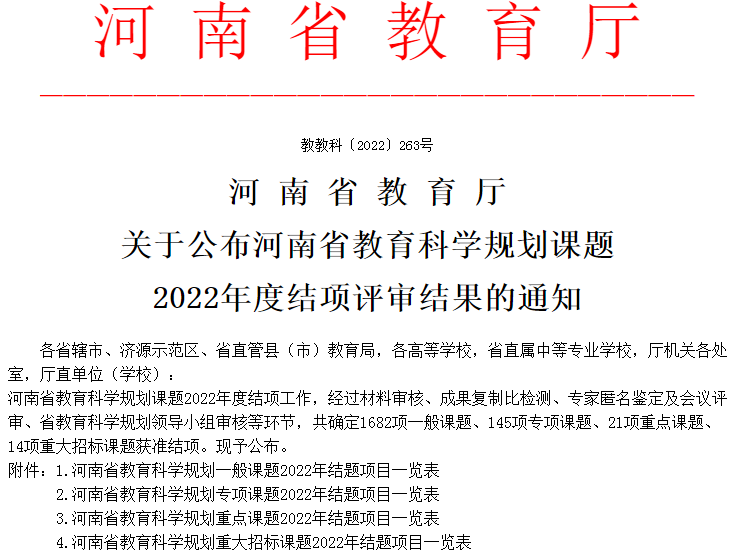 郑州龙湖一中关于公布河南省教育科学规划一般课题2022年结项评审结果