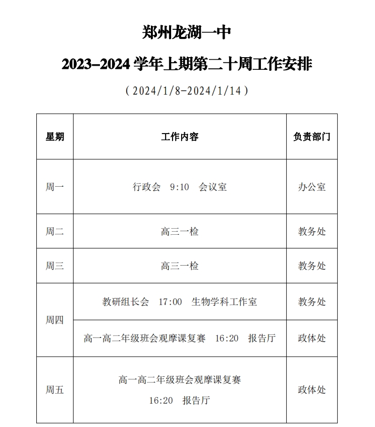 2023-2024 学年上期第二十周工作安排