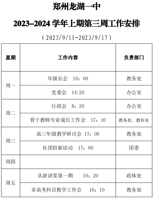 2023-2024学年上期第三周工作安排