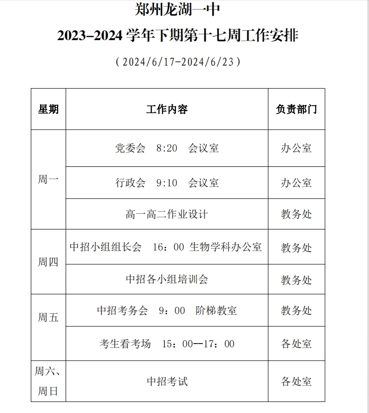 2023-2024学年下期第十七周工作安排