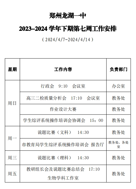2023-2024学年下期第七周工作安排