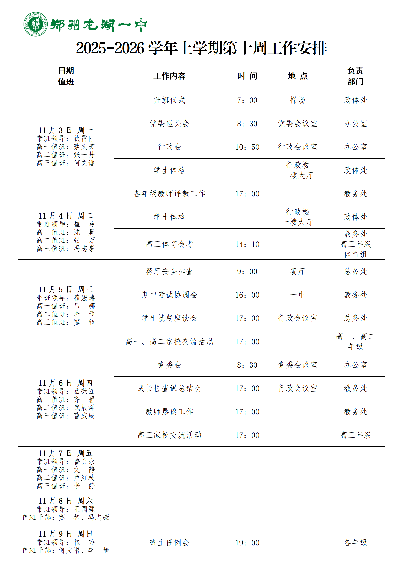 2024-2025学年下期第十周工作安排