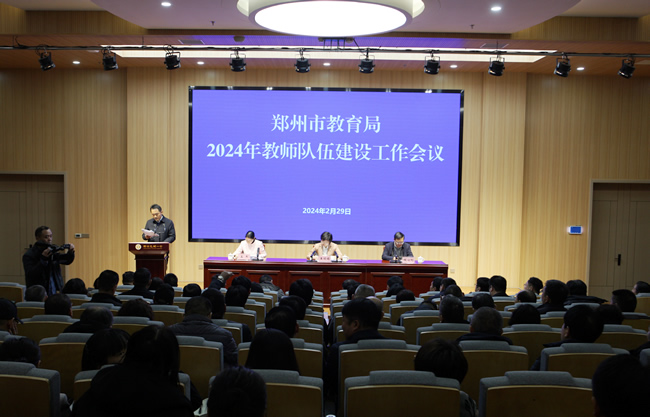 2月29日,郑州市教育局在郑州龙湖一中行政楼报告厅召开2024年教师队伍建设工作会,会议交流先进经验、总结2023年全市教师队伍建设工作,对2024年全市教师队伍建设工作进行安排部署。