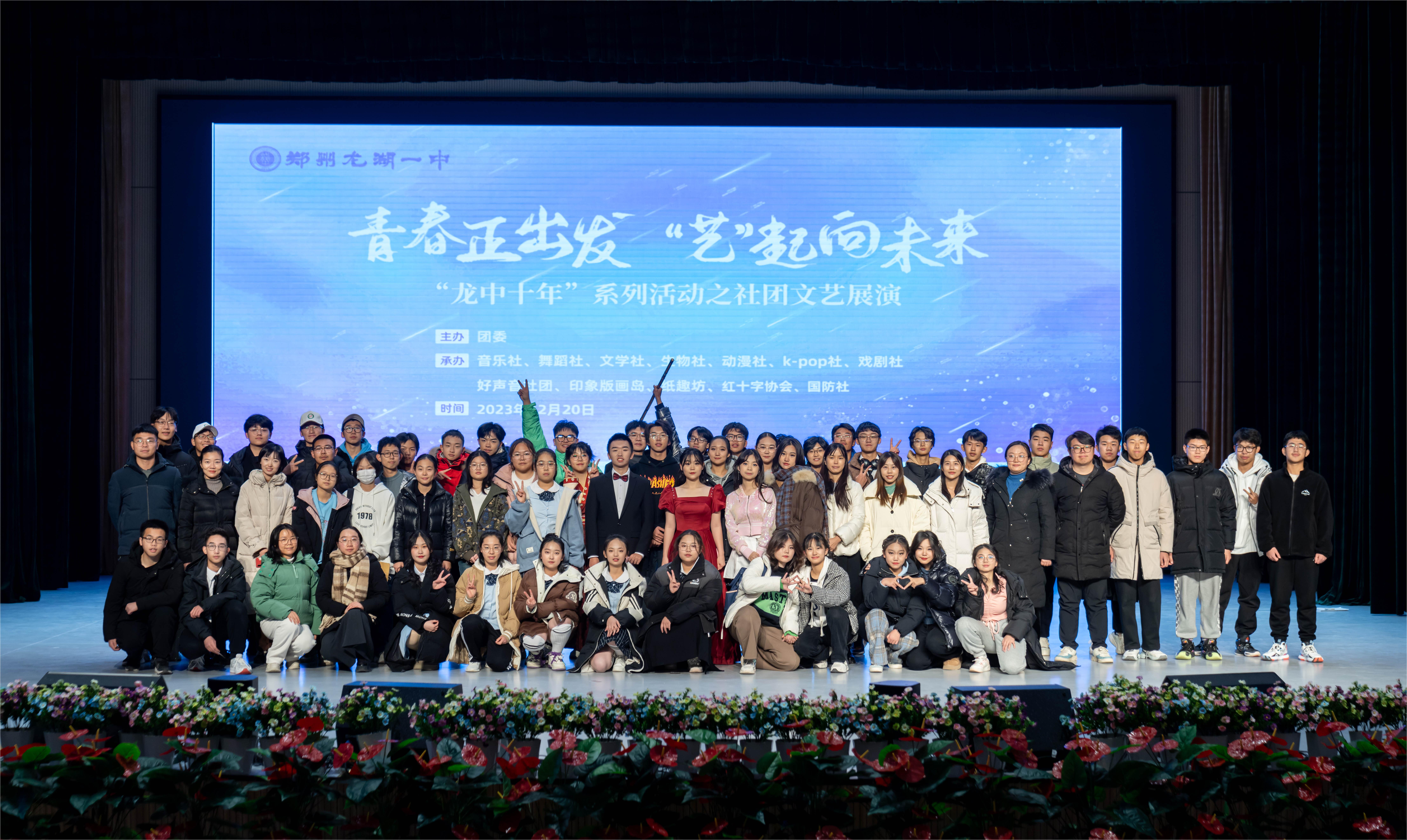 瑞雪兆丰年,百团迎新岁。新的社团,新的面孔,新的气象。穿过落雁修竹,看过月升日暮,只盼与你今日相见。青春正出发,“艺”起向未来!12月20日下午,郑州龙湖一中“龙中十年”系列活动之社团文艺展演在大礼堂正式开演啦。