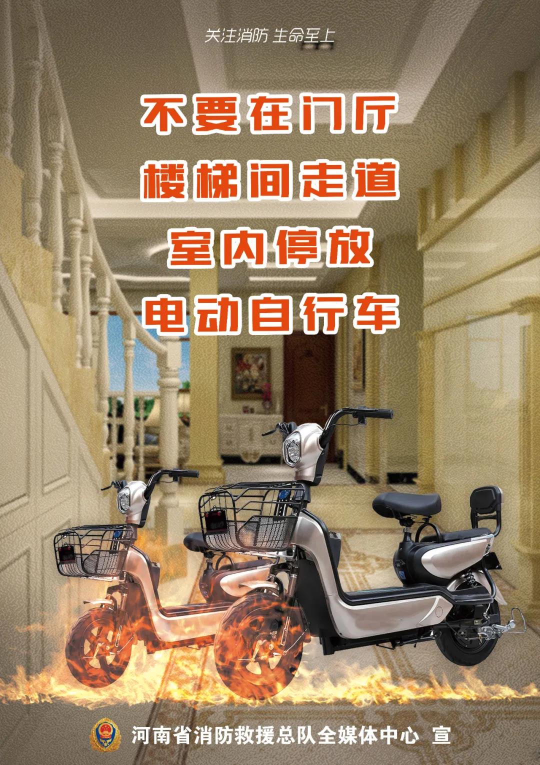 三是电动车停放要规范。不要在室内以及楼道、安全出口、疏散通道等部位停放电动车,以免发生火灾等紧急情况时影响逃离;