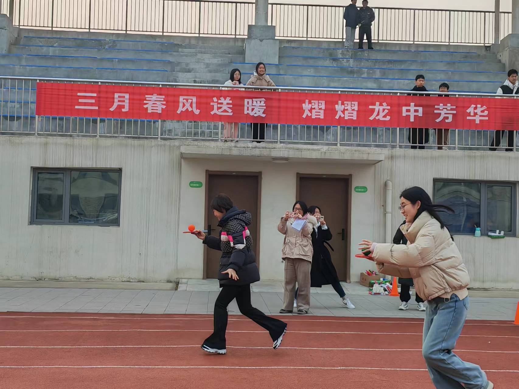 此次活动共分为两个项目:“一分钟踢毽子”和“托球接力”。活动中,女教职工们积极参与各项活动,团结协作,奋勇争先是对她们最好的写照。活动现场热闹非凡,欢声笑语不断。