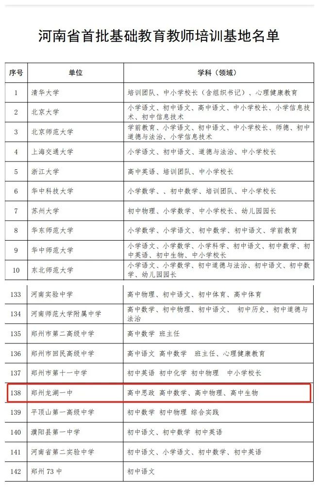 河南省首批基础教育教师培训基地